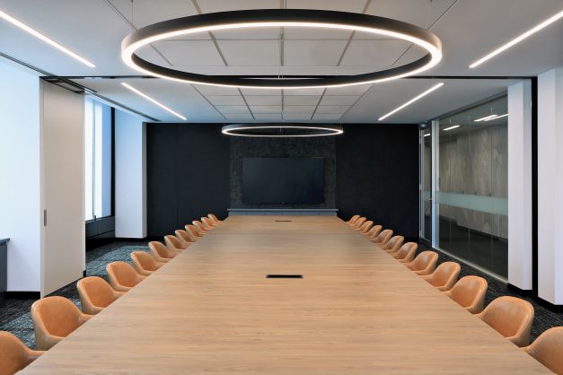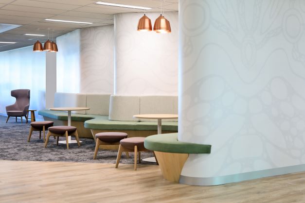 The works consisted of additional meeting rooms of various sizes, collaboration zones, staff seating and relaxation zones, extensive joinery, and acoustic works. The curved walls and curved seating areas on two floors were a notable feature of the breakout and meeting areas.