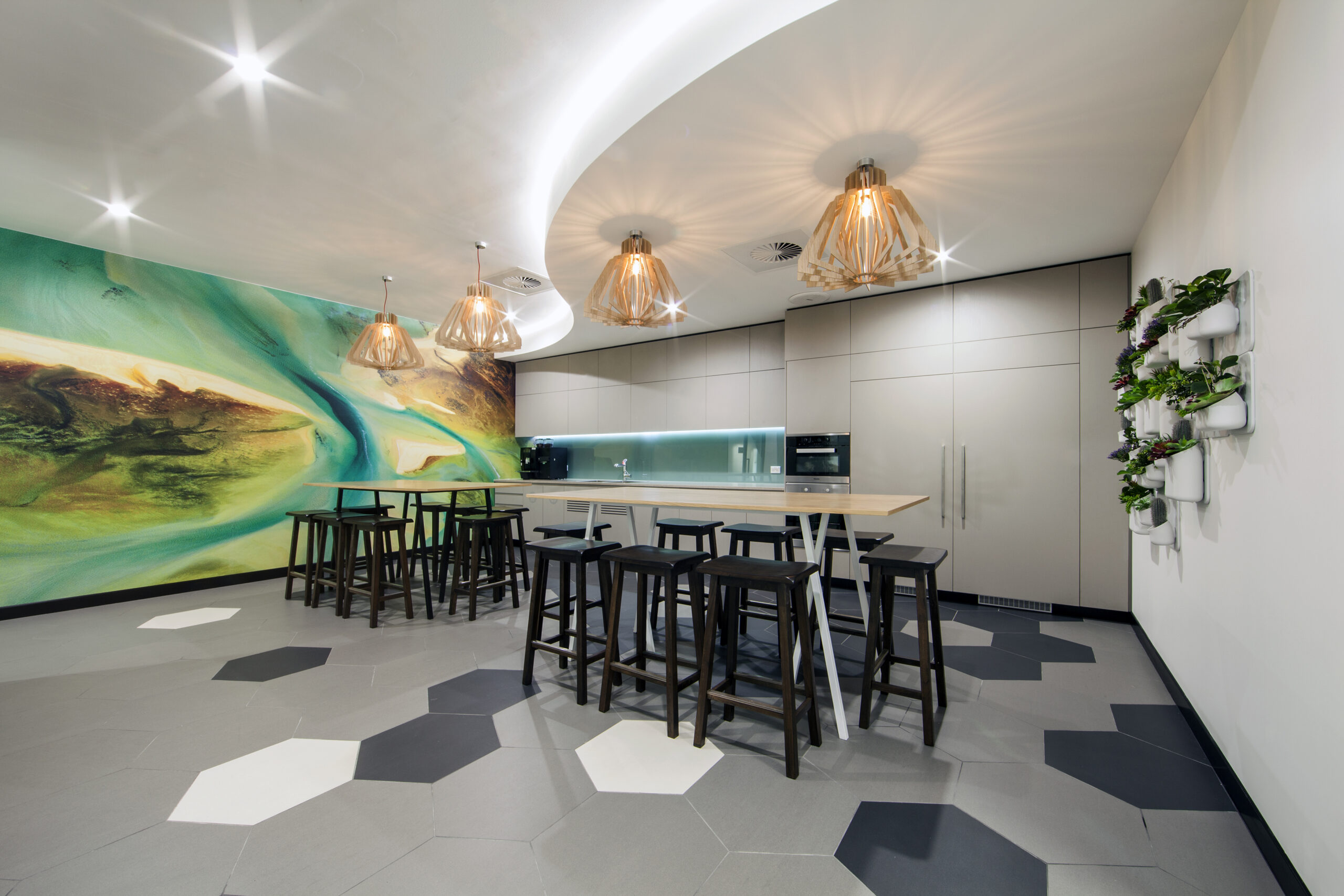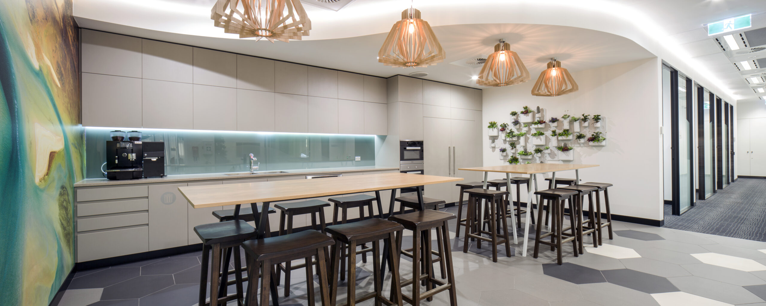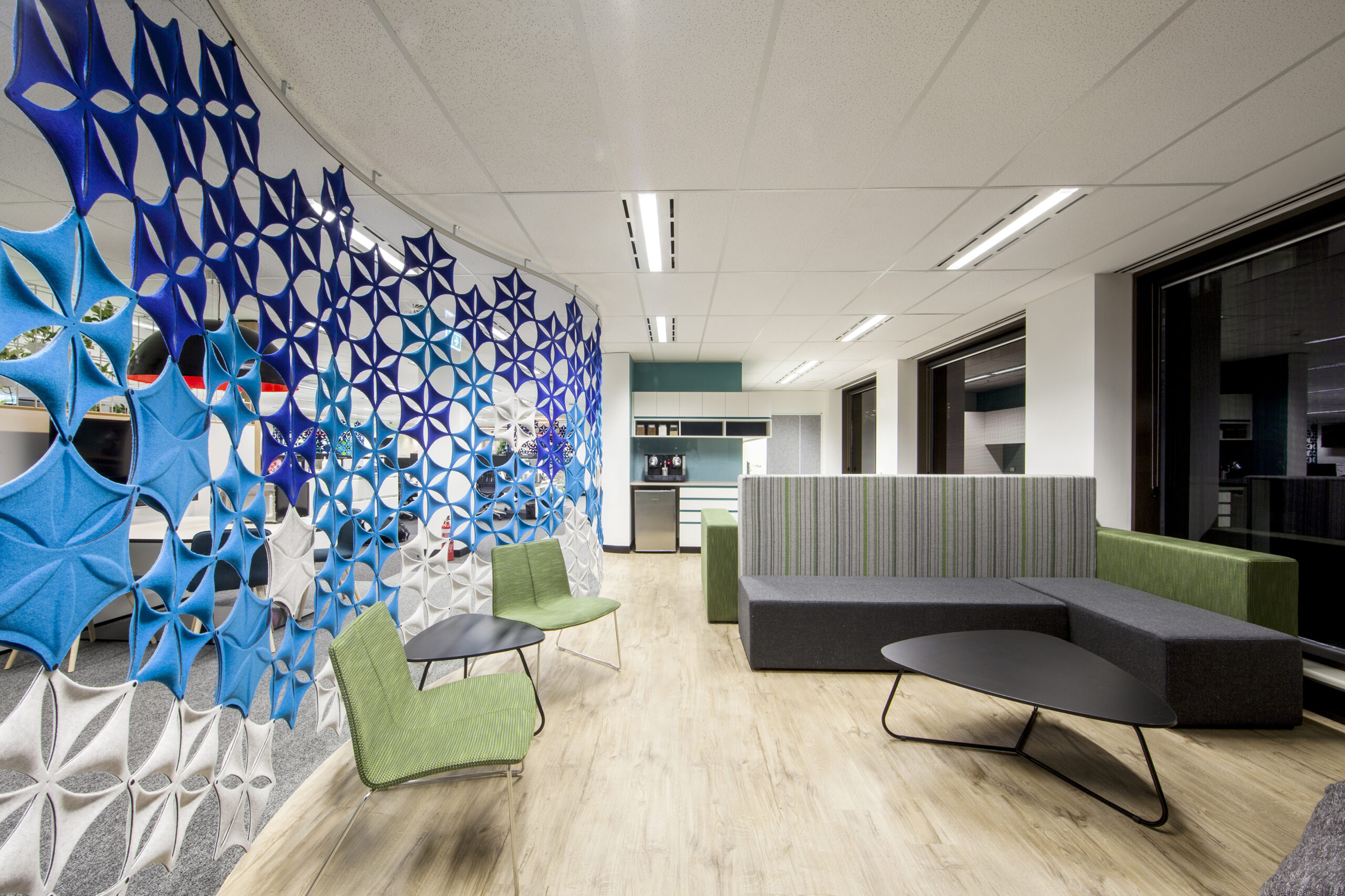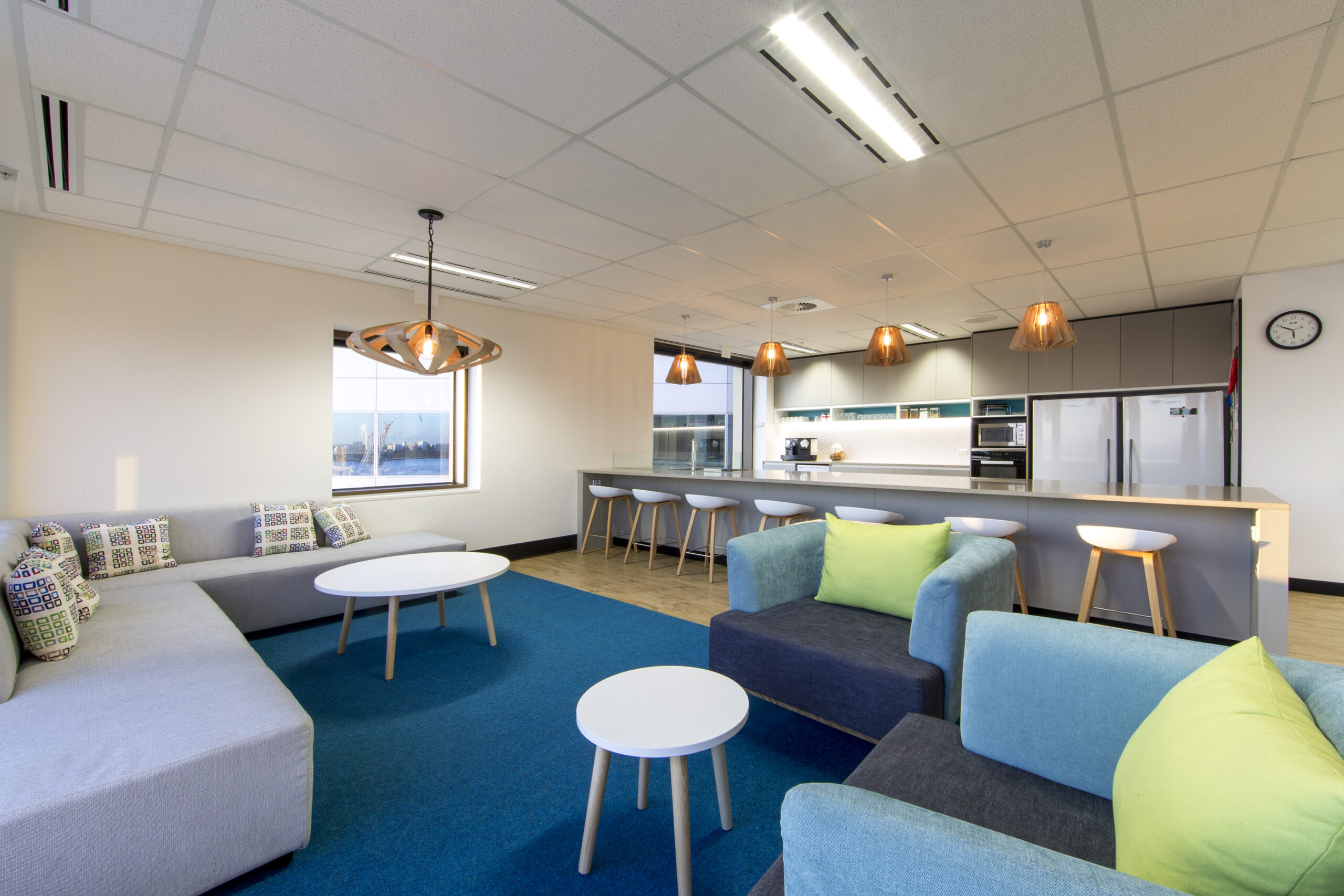 Open plan areas and multifunctional work zones were incorporated into the design and construction to reflect the operating style of this leading service provider.