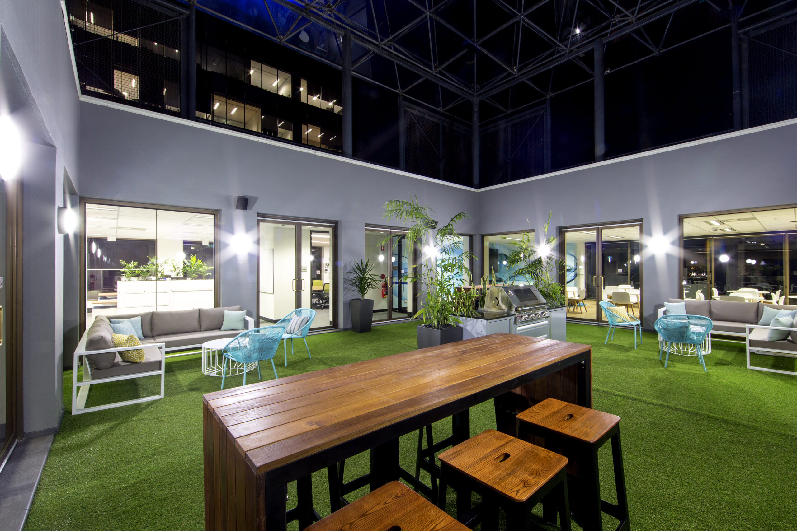 The project involved the delivery of three floors, with an additional level, a rooftop atrium and entertainment area delivered 12 months later. The layout involved an impressive Reception space, with a customised sweeping reception desk which evolves into a seating zone. All expertly crafted by the team and our subcontractors.